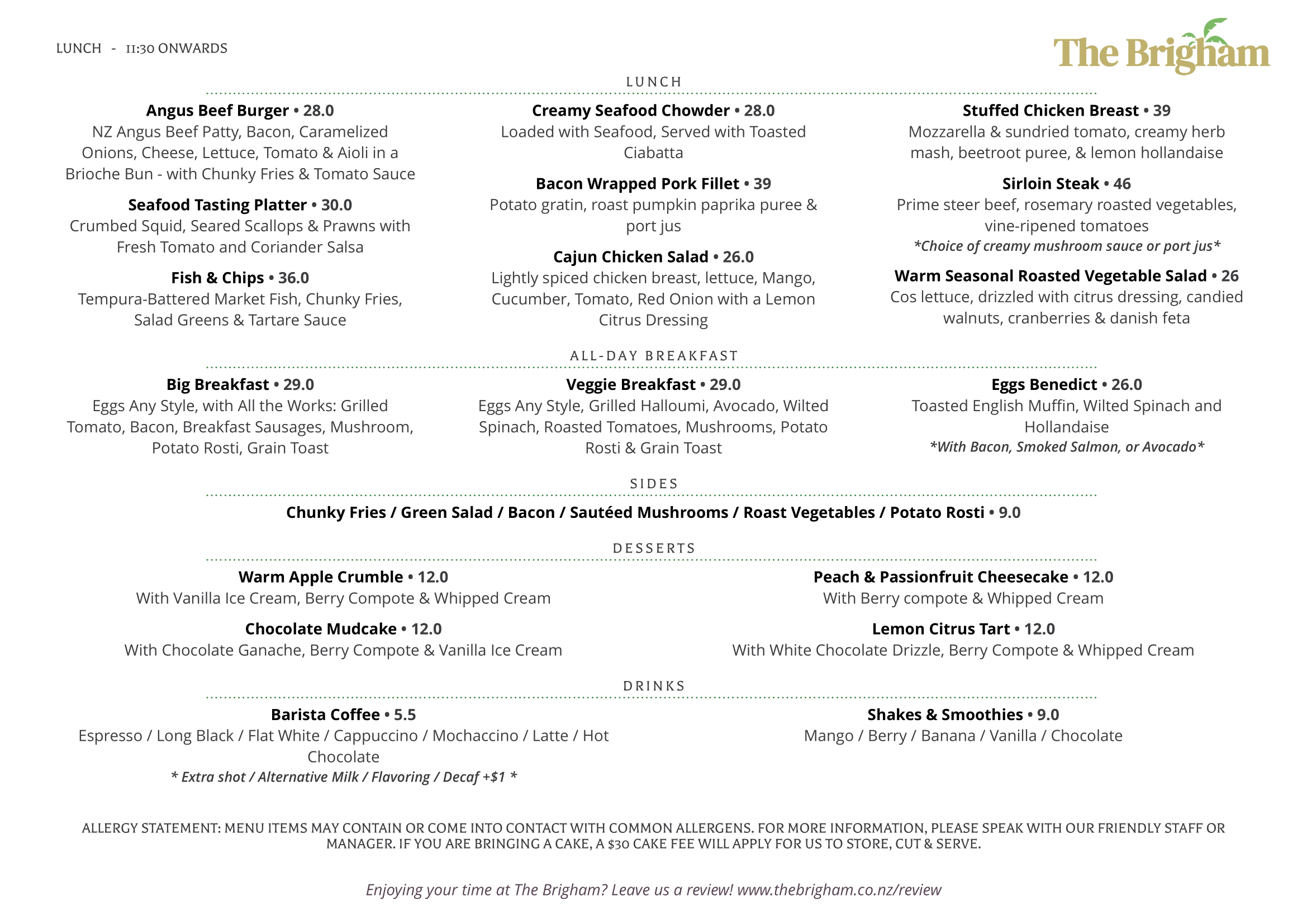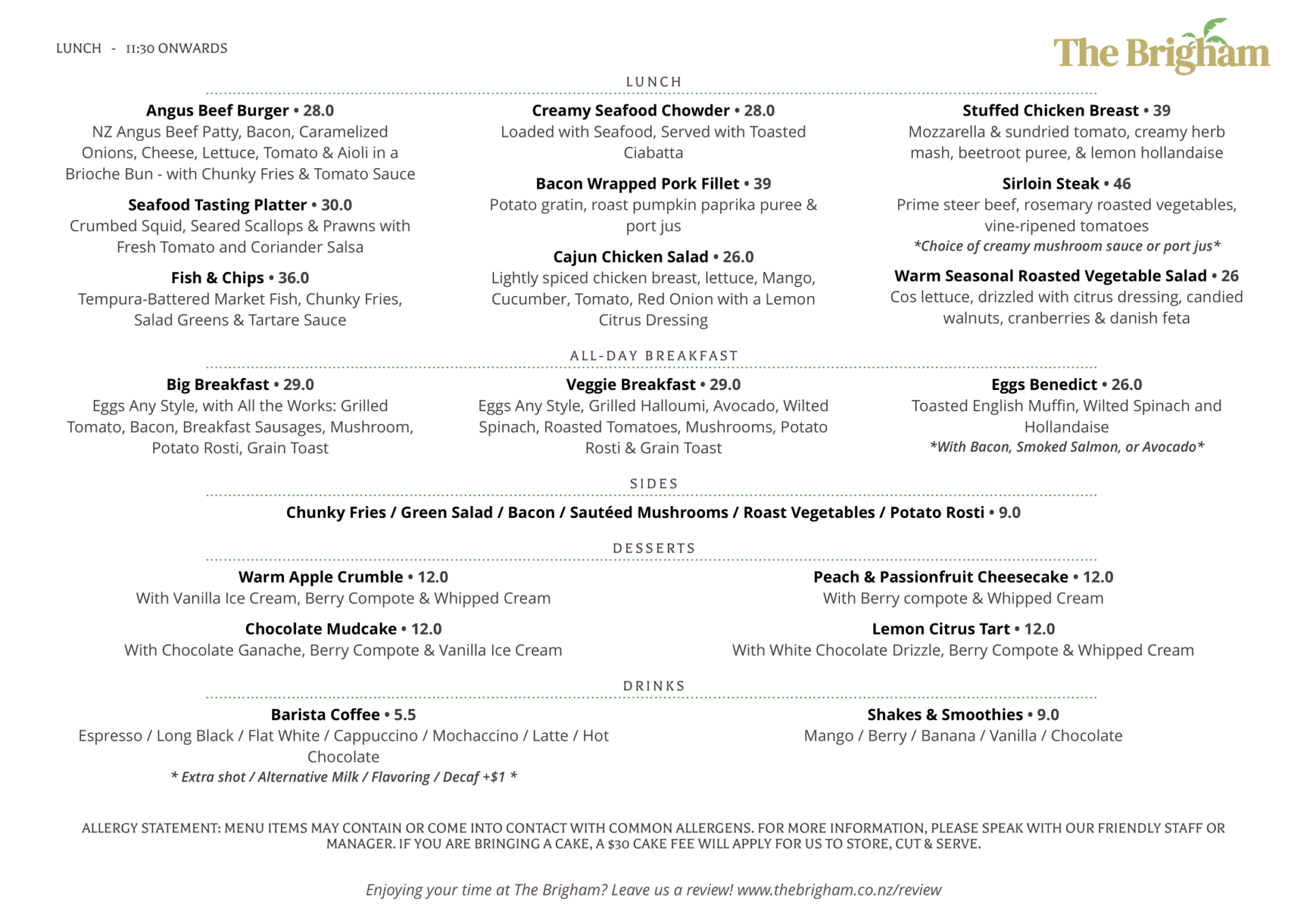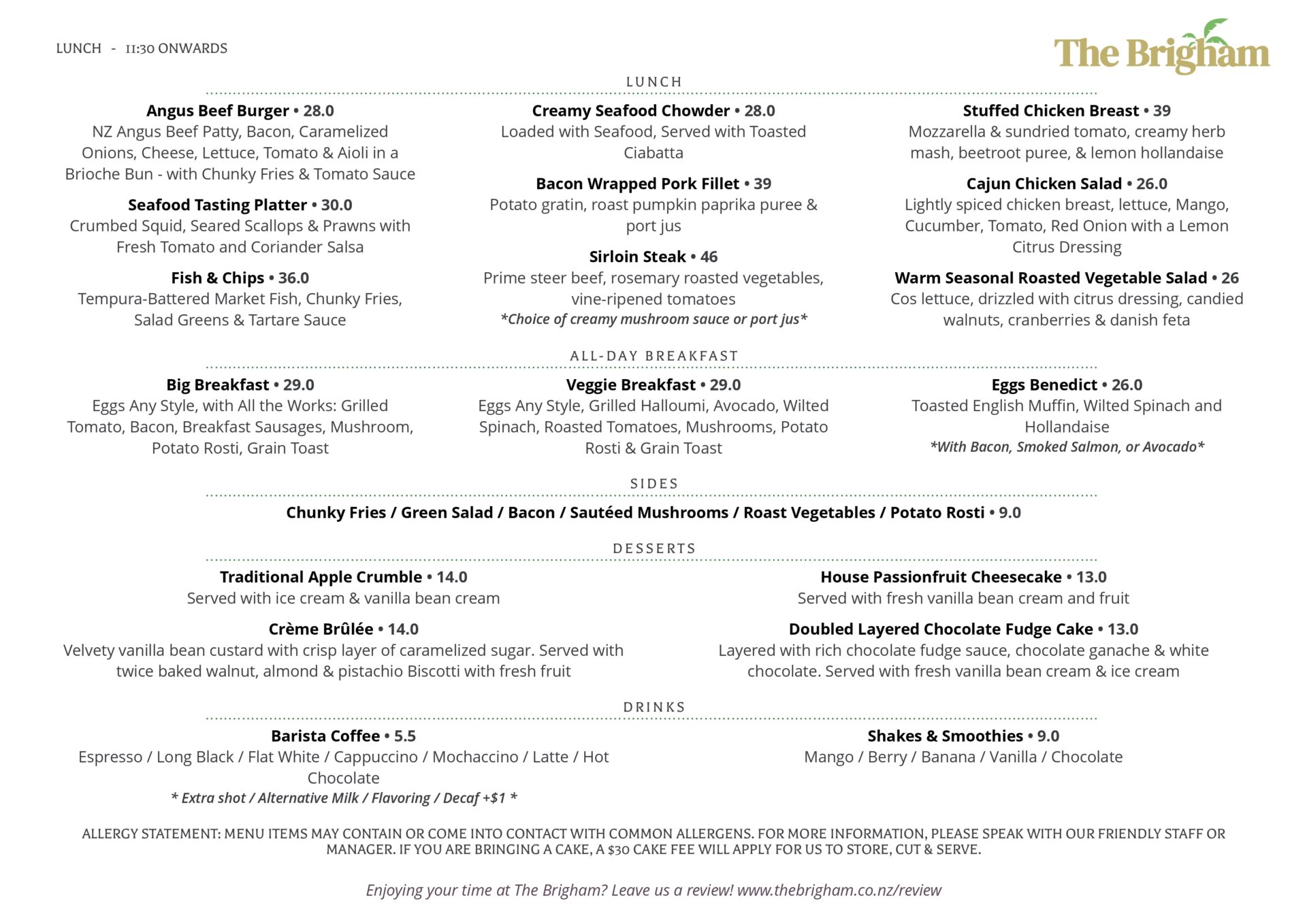 The Brigham is fully licensed, so you can enjoy your refreshment of choice with your meal.